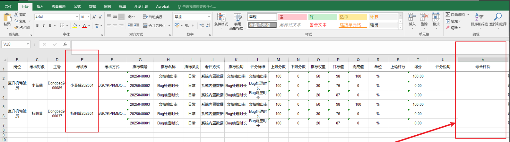 HR端操作:支持下载Excel格式模板进行离线考评,并与系统数据自动比对。