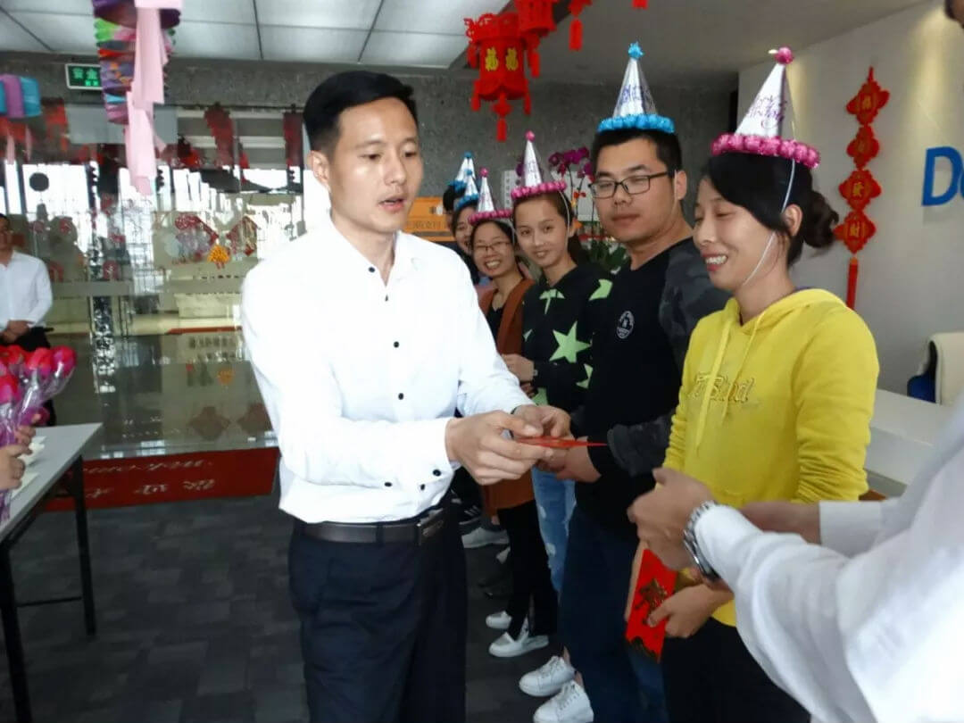 元宵活动第二个环节是生日会,集团总裁刘栋材先生亲自为3月生日的同事送上生日祝福和生日红包。并发表重要讲话:今天昆山分公司签约总业绩100万元,是送给所有东宝人的元宵礼物,感谢所有的东宝人和支持东宝的客户朋友们,今天东宝有这么好的发展势头,得益于大家的努力,更得益于大家的建议和意见,自从我们用了员工之家APP以来,总经理信箱经常收到不少的实名或匿名的建议,特别是基层员工的建议,让我们的决策少走了弯路,更让公司发掘了不少人才,只要是有利于公司的发展,爱要勇敢说出口……