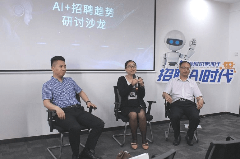 随后是沙龙讨论环节,围绕着“AI+招聘”的活动主题,广东省大学生互联网创业研究院副院长曾少林、企业运营规划高级顾问文海波、普耀集团资深HR经理明玉梅各抒己见,对AI技术与招聘领域的融合进行了精细的分析,探讨了AI技术影响下未来招聘新动态的各种可能性。此外,在沙龙会议上,嘉宾们现场深度解读了目前HR的招聘痛点,并有针对性地对如何借AI技术为招聘领域带来全新的突破阐述了自己的观点与作出了经验的分享。