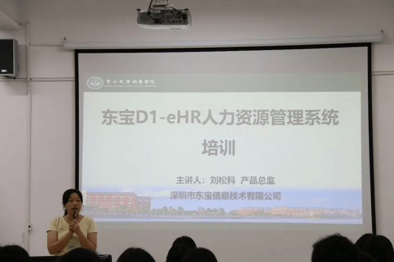 2018年5月31日上午,深圳市东宝信息技术有限公司的刘松科总监应中山大学新华学院公共管理学院的邀请,给在校人力资源管理专业的学生开展了一场“东宝D1-eHR人力资源管理系统应用”的培训。培训由中山大学新华学院公共管理学院人力资源管理专业副主任区展玲老师主持,人力资源管理专业的学生纷纷积极参加。区展玲老师希望学生通过此次培训,从刘松科总监身上学到职业技能,为之后的实习打好理论基础。